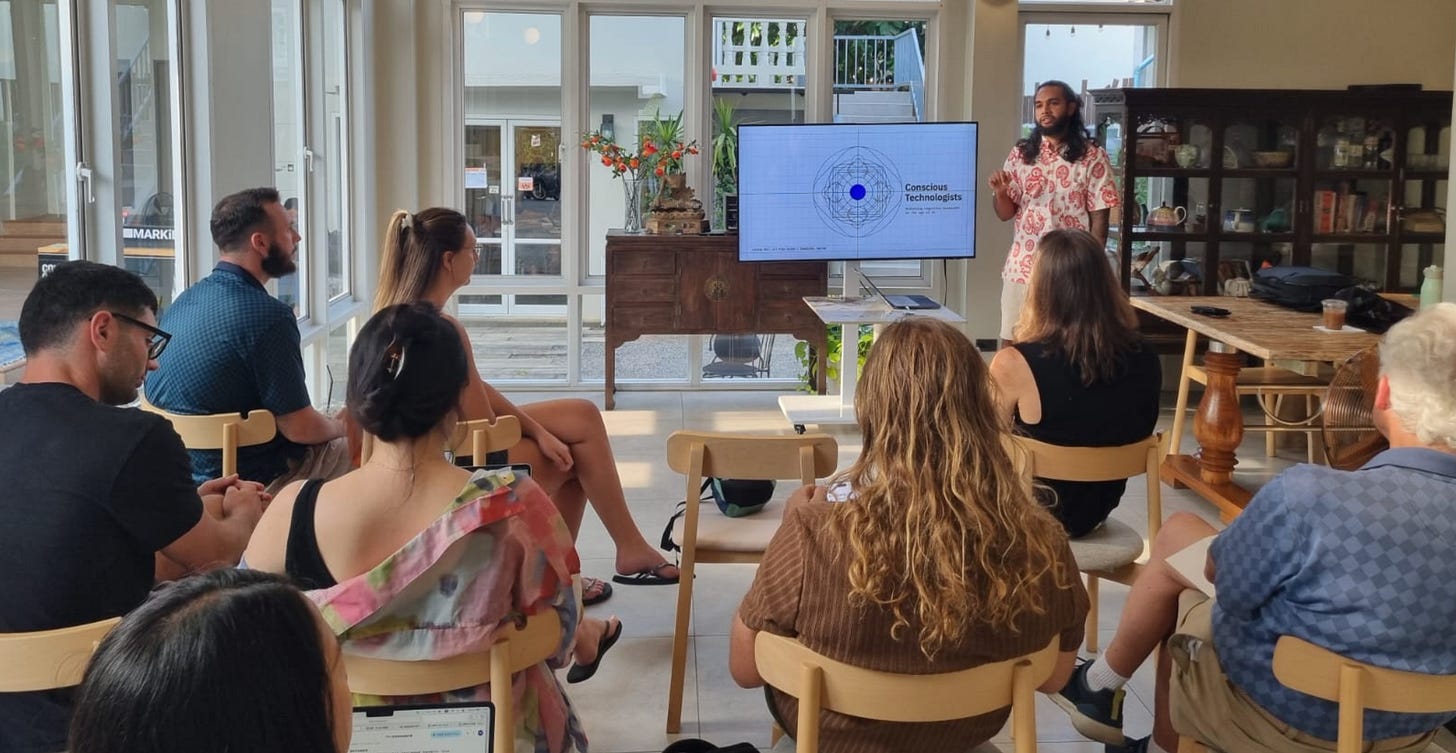At our first in-person Conscious Technologists meetup in Chiang Mai (thanks John Ho!), we went beyond tools and into the psychology and consciousness underneath them. We deconstructed legacy models that label people instead of looking at environment, explored how our personal “training sets” (life experiences) shape perception, and asked how skills — not just information — could be turned into living “APIs” that agents can access without removing direct human connection.