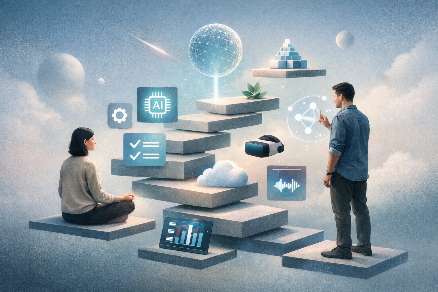 We also circled back to a theme I return to often: the future is neither purely digital nor an outright rejection of the digital. It’s integration. Physical‑world wellbeing practices and digital landscape design are not separate categories to be “balanced” like opposing forces on a scale. They form a single system. Your sleep, breath, and movement patterns sit in the same field as your notifications, dashboards, and default tabs. The rituals you have when opening your laptop coexist with the way your tools greet you and demand attention. If your body is fried, your stack quickly becomes a weapon against you. If your stack is chaotic, your body never really gets to power down. Conscious Stack Design sits in that bridge: treating the digital environment as an extension of your nervous system, not something detached from it.